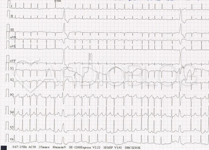Korábban ebben a feladványban találkoztunk például olyan kamrai tachycardiával, ahol a Vereckei-féle aVR algoritmus segített a ritmuszavar etiológiájának megállapításában.