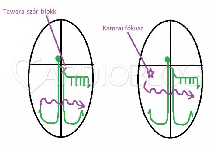 Fontos hangsúlyozni, hogy léteznek olyan, teljesen típusos BTSZB-os morfológiájú kamrai eredetű tachycardiák, amikre nem érvényes az, hogy a QRS eleje lassabb, mint a vége. Ezek a Tawara-szárból kiinduló vagy Tawara-szár reentry tachycardiák. Azok felismerése a pitvar-kamrai disszociáció esetén lehetséges a testfelszíni, 12-elvezetéses EKG-ból.