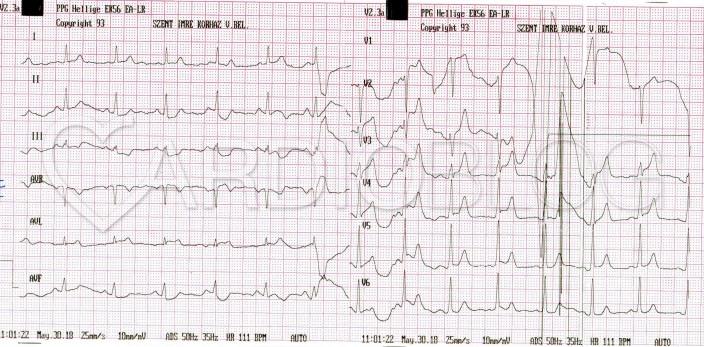 Osztályos megfigyelése során sikerül a spontán szűnő panasza alatt EKG-t készíteni:
